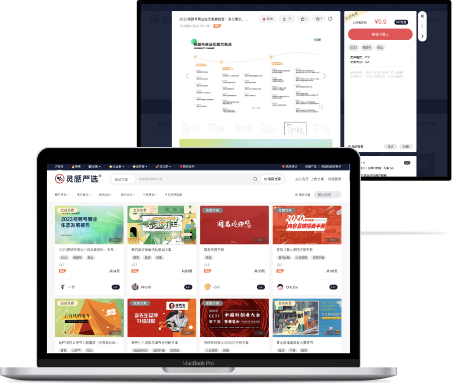 靈感嚴選是一個扶持原創作業,鼓勵創作的策劃方案平臺。平臺免費上傳方案,付費下載他人方案,共享策劃方案。
